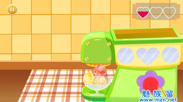 游戏能制作9种不同水果口味的冰淇淋和果汁,你还能混搭各种不同的口味。