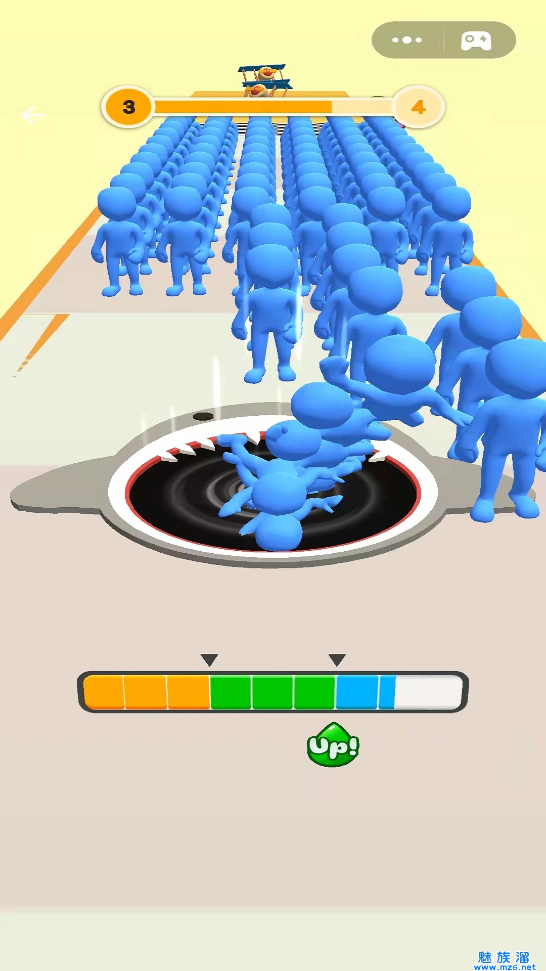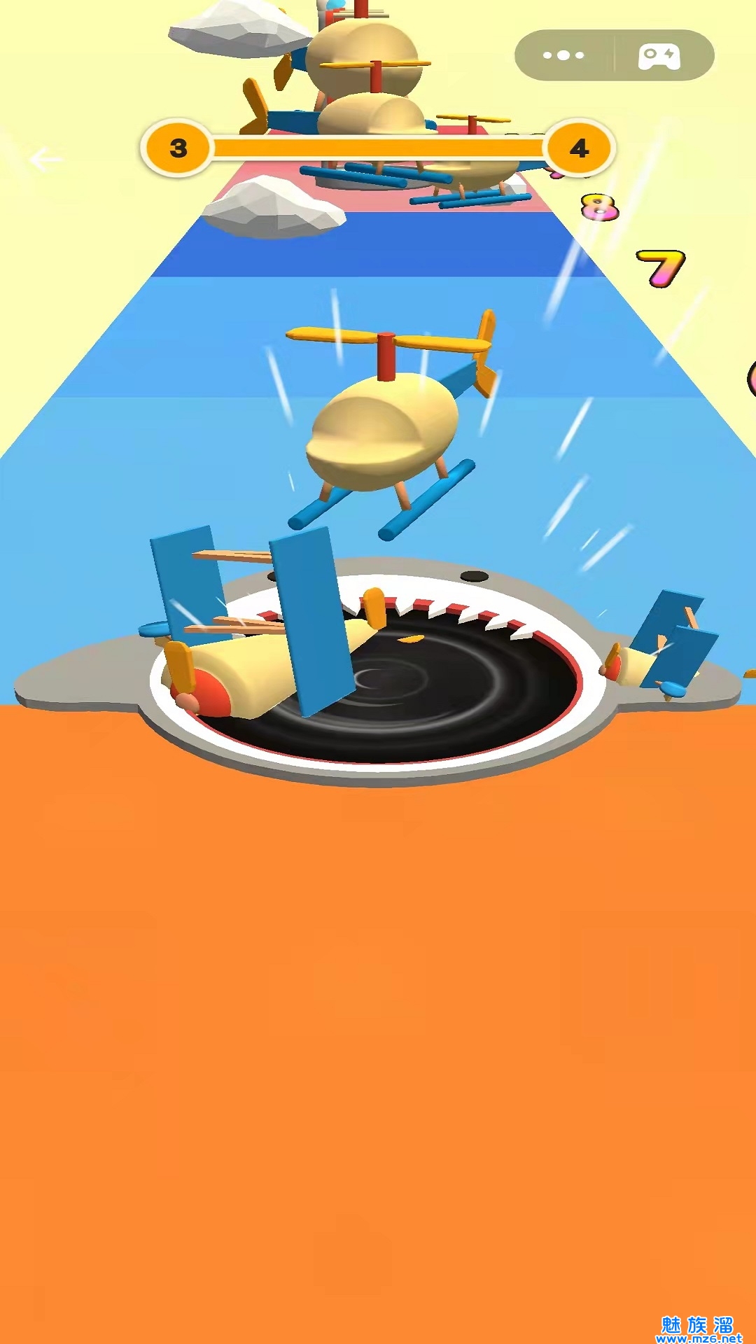 2、通过滑动来完成移动,让自己能够将面前的所有物品全部吞掉。