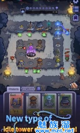 1、一款融入魔法元素的闲置策略塔防游戏,操作简单轻松;