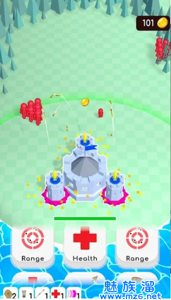 城堡护卫突袭(CastleDefence)是一款画面简洁,风格清新的塔防策略类手游。区别于其他繁琐的塔防类游戏,这款游戏是一款非常轻松解压的放置类塔防游戏。玩家可以玩得很佛系,而玩家的任务就是想尽一切办法来保卫自己的城堡。招募士兵,升级武器,阵容部署都是玩家需要关心的。感兴趣打发小伙伴赶紧下载来试试看吧!