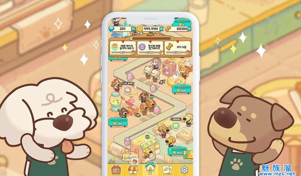 狗狗咖啡馆大亨是一款画风童趣可爱的模拟经营咖啡馆游戏