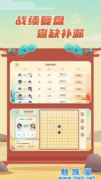 战绩复盘:下棋后可查看对弈历史,通过棋局复盘发现薄弱环节,查漏补缺。