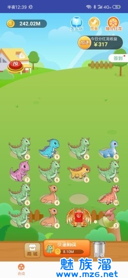 4、两只37级龙合成或者五龙(金木水火土)合体获得分红龙,每天享受平台分红