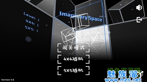 1.《Imaginary Space》这个游戏画风可以说很简单了,在游戏开始的时候,在前三关会有引导,来带领大家进行游戏,在进入游戏时,会给玩家选择闯关模式or随机模式,游戏开始的时候,不知道有没有人记得数学方面的三视图,屏幕的左边会给大家显示左视图(之前是右视图)、正视图、俯视图,这三个图会显示格子在这个立方体中的相貌,屏幕中央会显示你手中拥有的小立方体的数量。