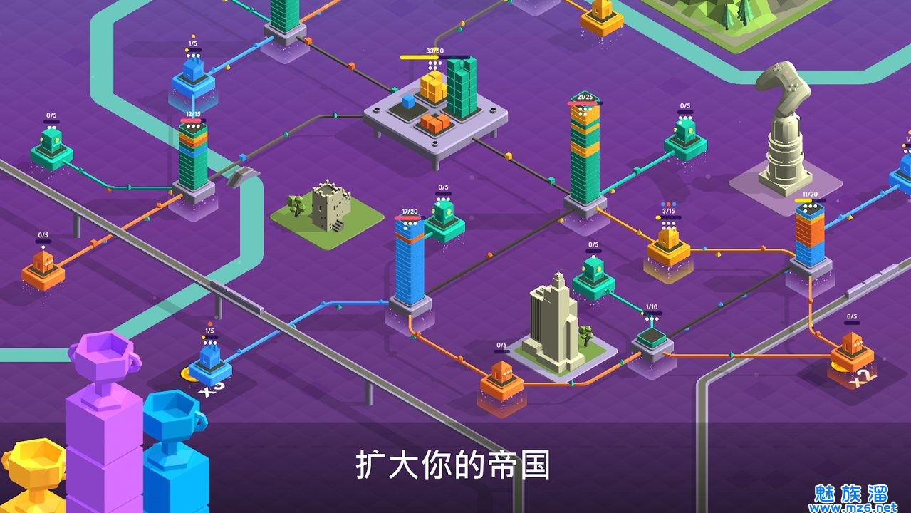 在不同的枢纽之间建立联系,为多个目的地提供交付,比如工厂、警察局、咖啡馆、图书馆、精品店、酒吧、酒店、披萨店、宠物店或学校。