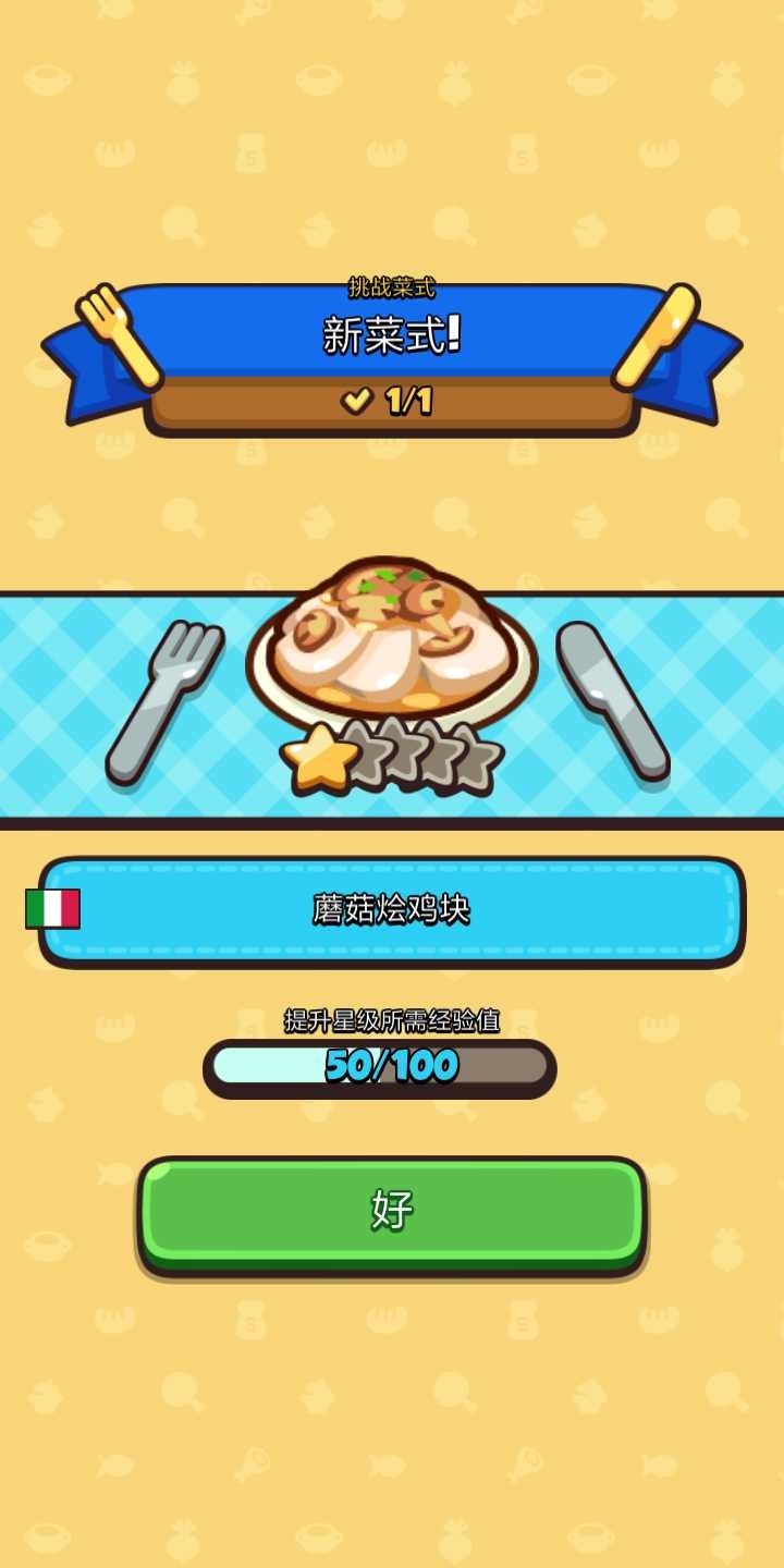 当你升级厨师等级时,你将获得美味食材的新的食谱;