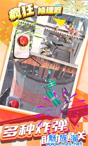 疯狂修理匠是一款十分有趣的休闲益智的游戏,在游戏里,有着众多的游戏挑战,玩家必须全力以赴的进行挑战,且必须完成每天的活动和任务,只有如此,才可以解锁更加闪亮的头衔,在这里,游戏的玩法不但有毁灭与破坏,还有重建设计,玩法十分的解压,各种各样的炸弹都可以使用,感兴趣的小伙伴们,赶紧来下载去玩吧。