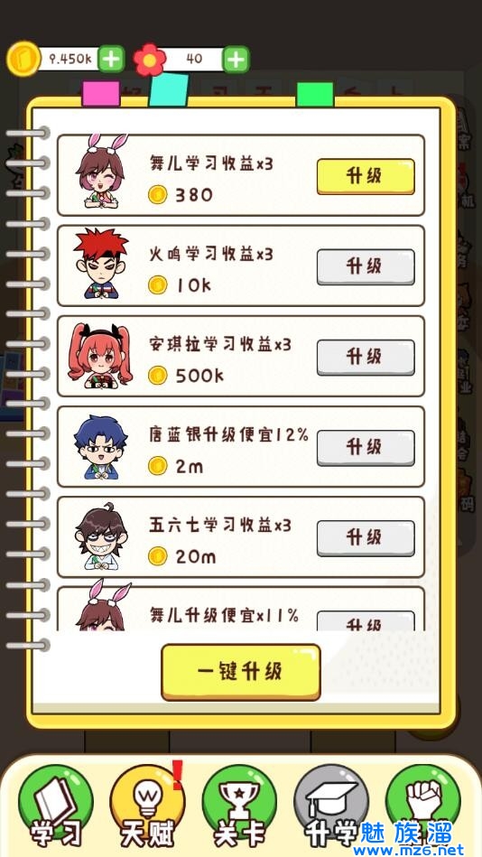 每个人的天赋和资质是不同的,玩家可以提早培养同学们的资质,使得他们学习效率极大提高。、