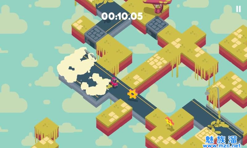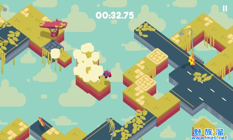 游戏中,玩家将控制一辆皮卡车在一个个悬浮在空中的浮板上行驶;