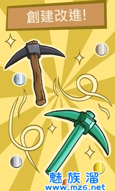 通过不断的点击手机屏幕来进行挖掘宝矿,随着挖矿任务不断增加,更优秀的矿工然后改进锄头,提高挖矿效率
