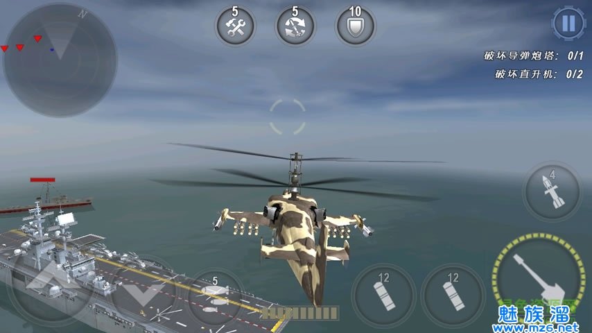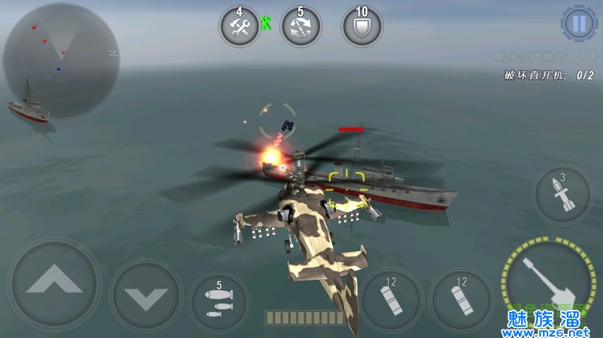 玩家在游戏中可以驾驶着直升机进行拟实海战,游戏的战斗效果非常的出色。