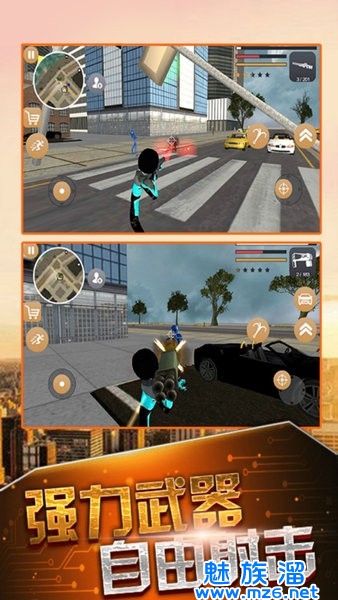 钩锁能讲远距离的目标人物神不知鬼不觉地抓取到你面前,甚至可以将目标逃窜搭乘的车辆、直升机往回拖拽。游戏背景设定在异国的繁华都市,由于种种问题,导致了诸多黑帮的崛起,玩家扮演火柴人正是为了瓦解这些势力。
