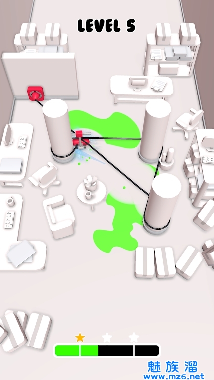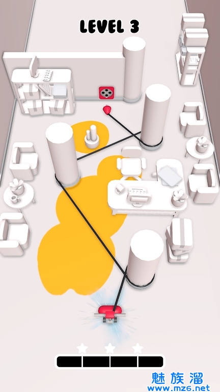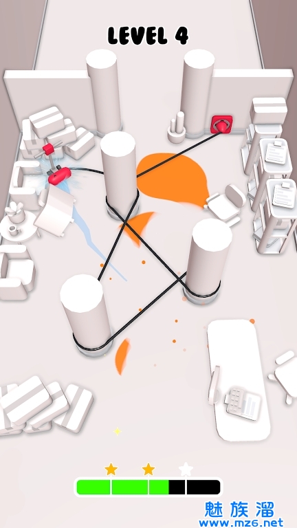 疯狂清洁工描述的是一款乐趣多多,轻松休闲的动作益智闯关类游戏,玩家在游戏中需要扮演一位清洁工人,将清洁工具的电线进行合理的规划,缠绕在柱子上,进行合理的运用,需要将电线分布在对应有污渍的地方,然后点开始键进行清理,当清理达到三颗星即可获得胜利,游戏玩法十分简单,快来下载体验一下吧!