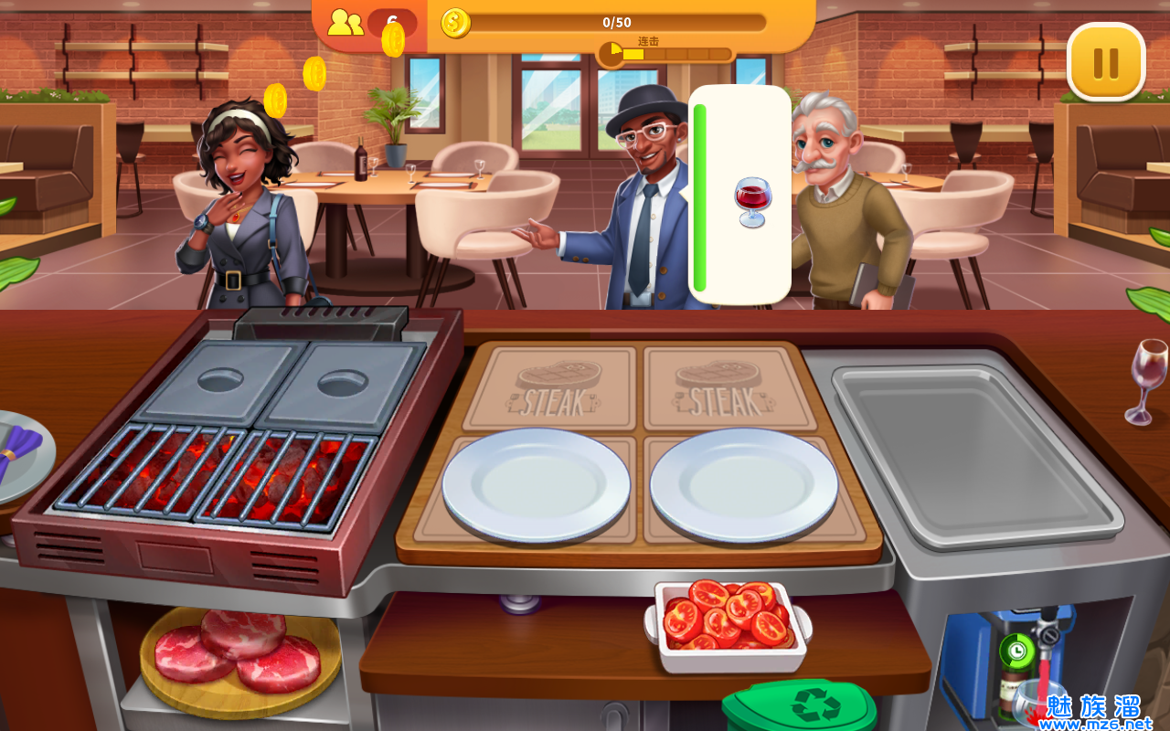 在这款游戏中,玩家将会经营着一家餐厅,玩家要做的就是用牛排和红酒来满足客人的需求