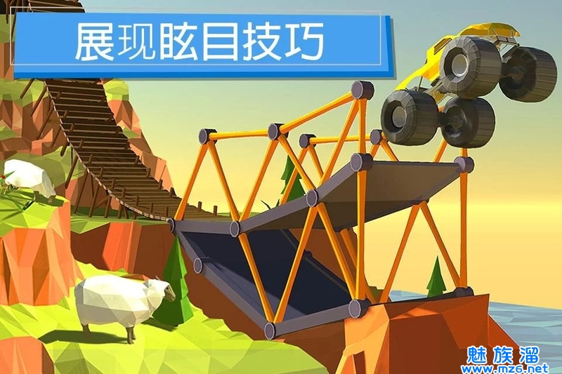 在这游戏中玩家需要运用这里面的材料,搭建出一座坚固的桥梁出来完成挑战;