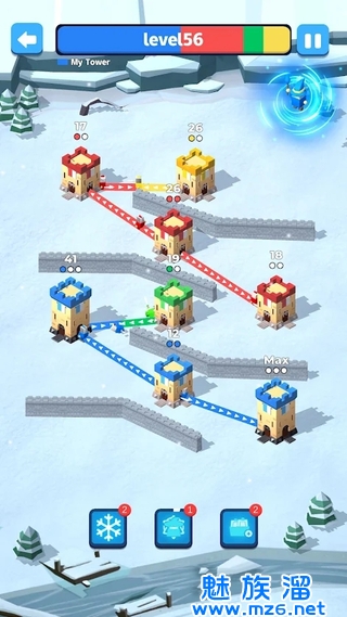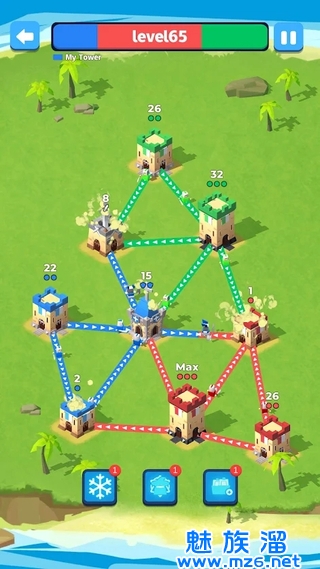 征服塔接管他描述的是一款休闲十足,趣味多多的策略塔防类游戏,玩家在游戏中,你可以根据防御塔提供的士兵兵种来选择出征,将指尖点击到其他的城堡进行进攻,输出的士兵去占领其他的城堡,直到对方的城堡数字逐渐减少,最后城堡的颜色变成己方阵营,游戏玩法十分简单,快来下载体验一下吧!