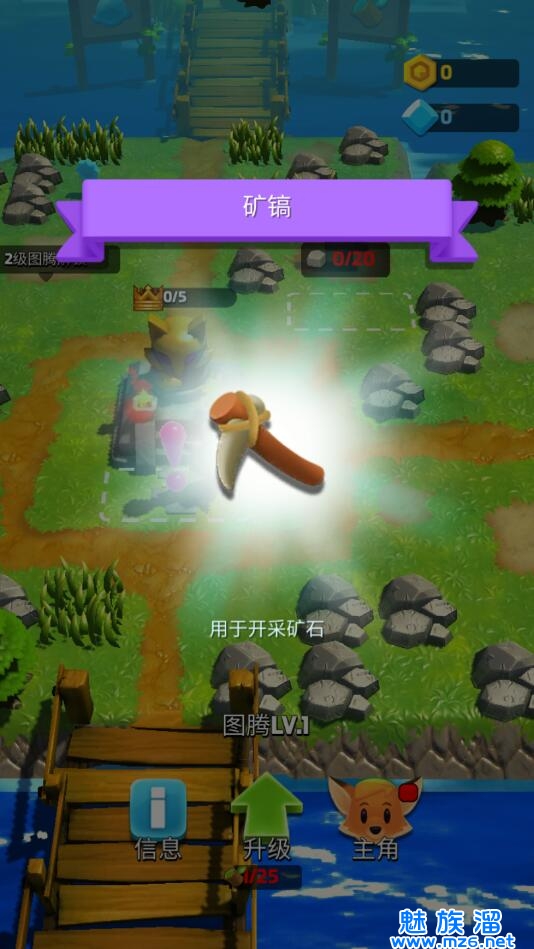 出门收集各种资源,解锁新工具,打造小镇。