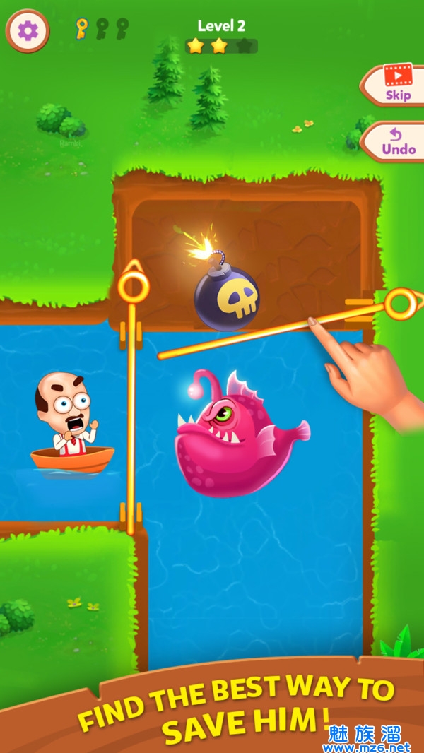 游戏操作上非常的简单,精心设计的各个关卡,需要充分去开动你的大脑闯关