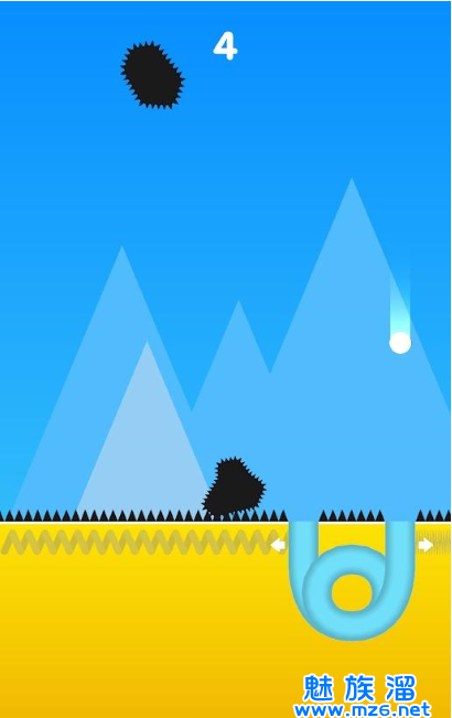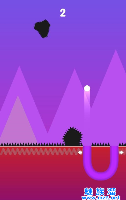2、左右滑动屏幕控制隧道的移动,正好接住小球,躲避各种带刺的障碍;