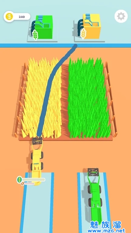 收割供应描述的是一款简单休闲,趣味十足的闯关类游戏,玩家在游戏中通过指尖的移动,来控制农夫角色进行丰收活动,挥舞手中的镰刀,将一棵棵成熟的稻谷收获干净,并且打包装箱,游戏画风采用卡通风格来家具游戏的独特魅力,游戏玩法十分简单,快来下载体验一下吧!