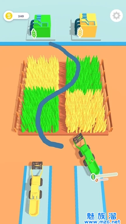 1、法非常的简单,用手指滑屏来控制角色移动,农民会自动挥舞手上的镰刀,在时间结束前你要尽可能将成熟的麦子收集起来;