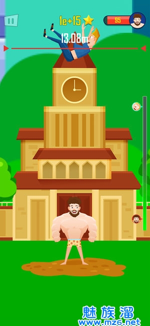 奇葩的主题玩法,玩家将操控一个肌肉男,把人向上抛飞