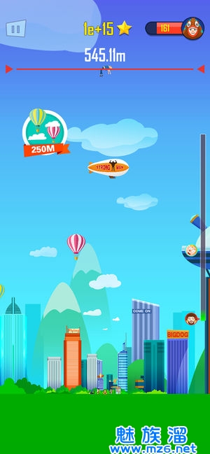 抛出人物会飞到空中,人物抛得越高得分就越高。抛出人物后在将要落地时再次点击屏幕,可以将游戏人物再次抛出。累计抛出的越高,得分就越高。