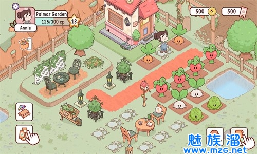 Q版游戏画面,多种休闲管理和玩法方式,玩家可以经营自己的农场和花园。