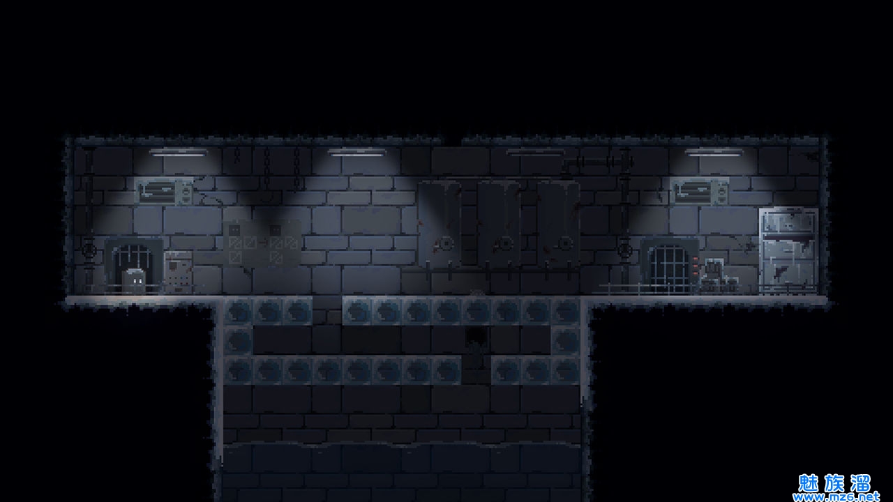画面方面:像素的画风,偏于灰暗,整体氛围营造的非常到位,黑暗的下水道,满城的废墟,搭配黑色的小方块拿着微弱了火把,使得游戏的风格很是成功。沉韵的BGM也加重了末日氛围