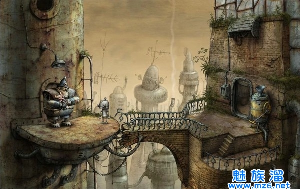 机械迷城(Machinarium)以独特的水墨风格展现给玩家的是一款冒险解谜游戏,值得期待。机械迷城中文版将采用传统点击式界面,和Samorost游戏相似,2D背景和人物,没有对白.不过,Machinarium游戏时间将更长更复杂,这次画面将由手画,而玩家有个小物品栏。每个人都是机器人,包括我们的小英雄,他将对从 "Black Cap Brotherhood"来的坏人。 机械迷城游戏在2009年独立游戏节上斩获了视觉艺术奖。