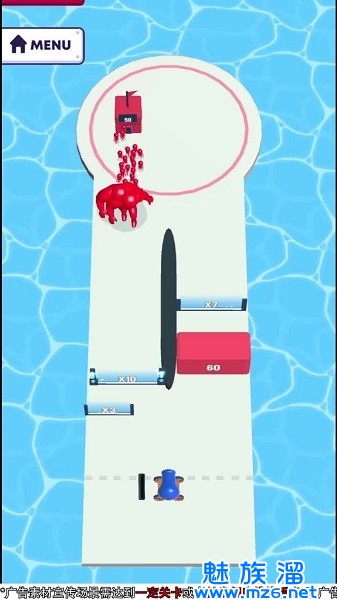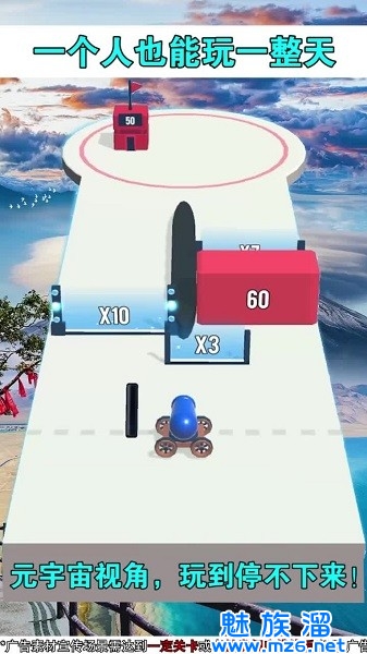 3、受到不同关卡中倍增门槛位置的不同,玩家需要不停的移动火炮到指定位置进行发射,来达成火柴人角色成本增长。