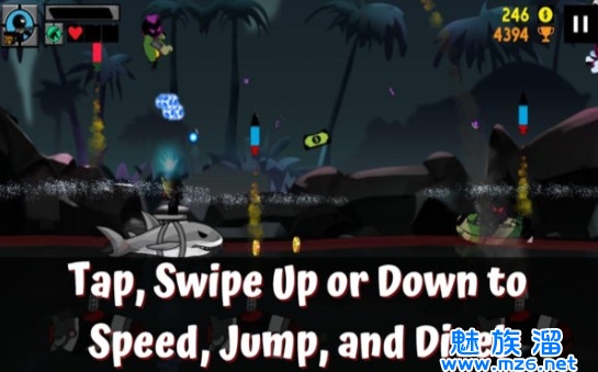 2、鲨鱼可以在海里自由游动,捕食更多的生物,以获得相应的奖励。