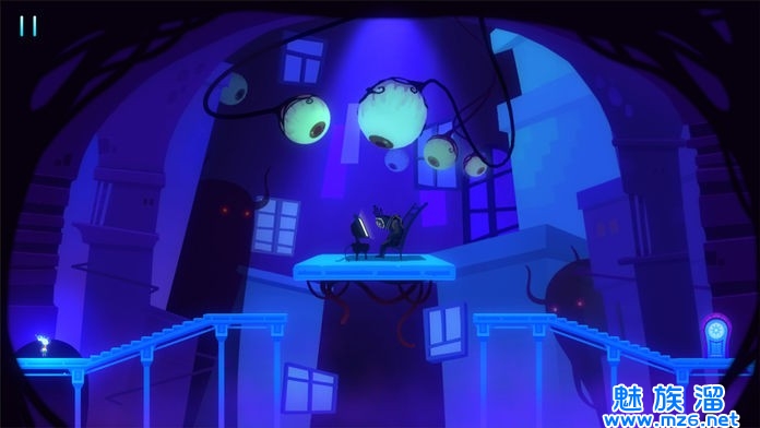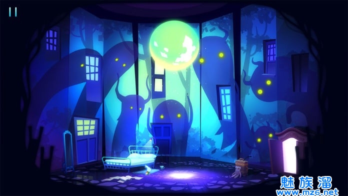 @呜呜是哪位:游戏是从一个诡异的房间开始的,空旷的房间里几乎没有什么摆设,夜幕下的墙壁倒映着张牙舞爪的鬼怪,随着光线摇曳黑影也跟着晃动,而游戏的主角弱小的身影静默地蹲在房间中央。