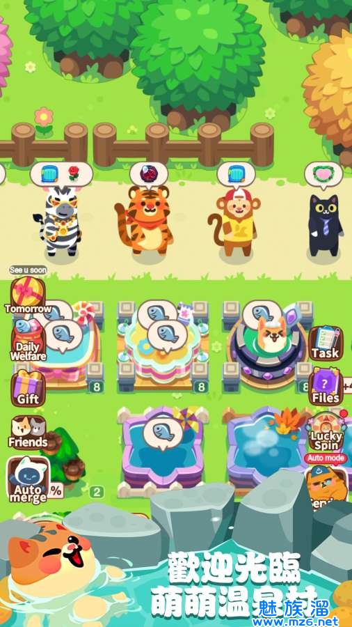 萌萌温泉村是一款Q版卡通的经营模拟类游戏,游戏内你要经营你的温泉店招待各种小动物们,建造多种多样的温泉,让每个客人满意而归,解锁新种类温泉,进行合成,休闲放置自动收鱼,简单有趣的小游戏。