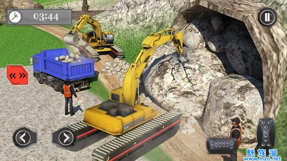 3.操纵虚拟摇杆可以控制车辆的运动,还有挖掘机功能;