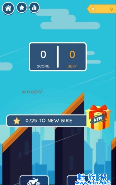 1、获得更多星星奖励吧,让自己解锁更多新的摩托车。