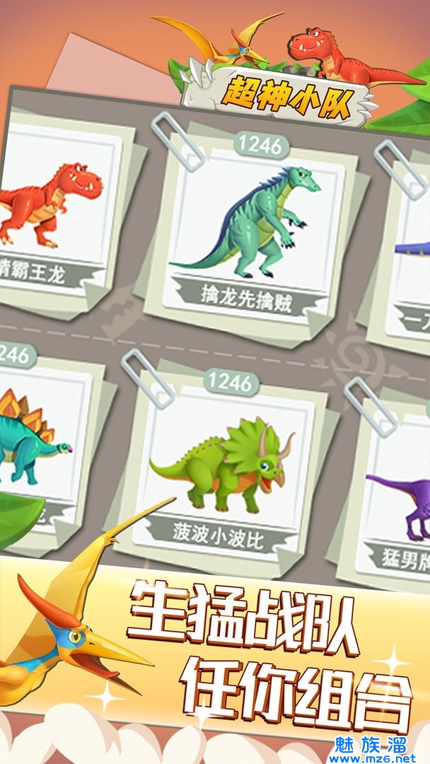 欢迎来到超神小队世界,在这里你将会遭遇到多种多样的古代恐龙,无论是侏罗纪蛮龙还是白垩纪霸王龙,你都能在这里找到他们的踪影。不断养成,不断进化,组建最强的恐龙小队。这是个弱肉强食的世界,你准备好了吗?
