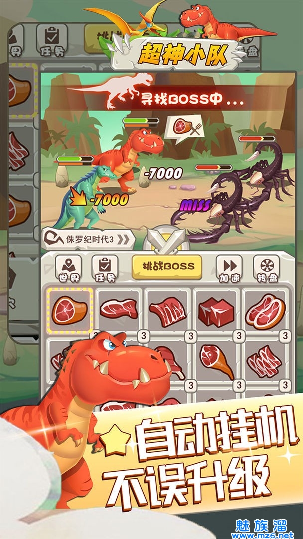 超神小队是一款集恐龙收集,恐龙进化,放置冒险,PVP竞技,为一体的回合放置类游戏,无论是喜欢恐龙时代的死忠粉还是放置挂机的休闲玩家,都能在这里找到专属于你的快乐。