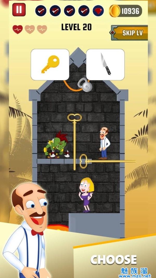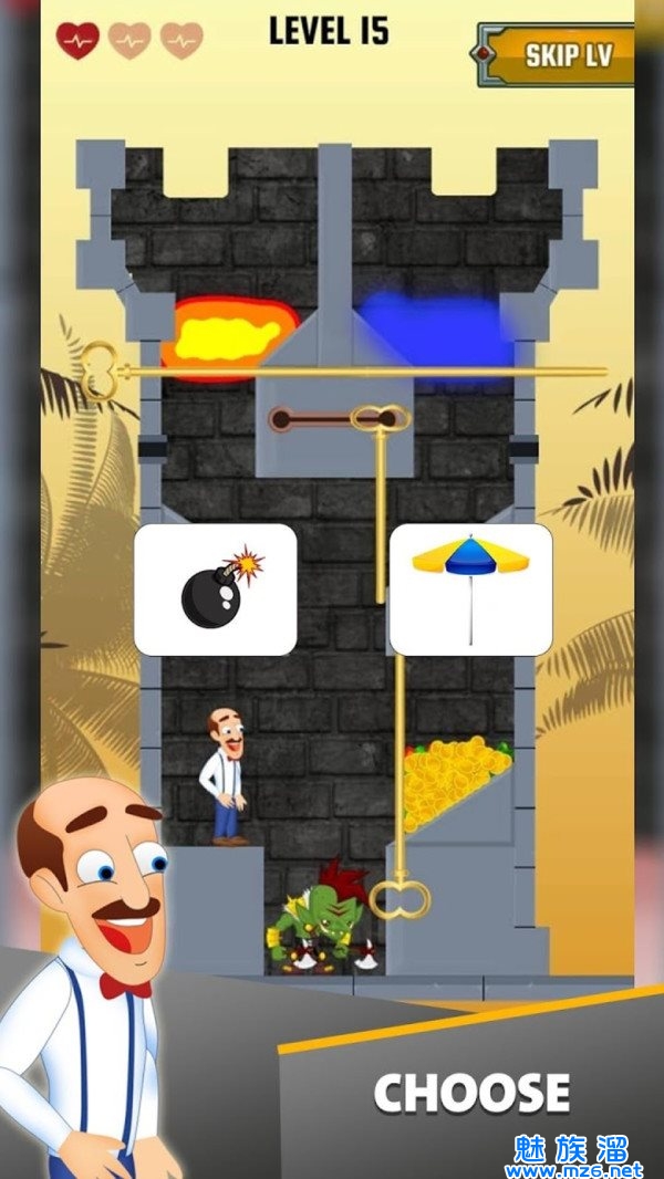 《救救那个男人》是一款非常经典的拉针主题的烧脑休闲类游戏,在游戏中玩家需要通过思考后拉开关卡内的针来触发机关,你需要拯救关卡内被困住的人,在这里可能会有可怕的怪兽,你需要合理的利用机关中的陷阱来击杀怪兽,游戏内关卡众多,有100多个逃生主题,非常考验玩家智力,快来下载试试看吧!