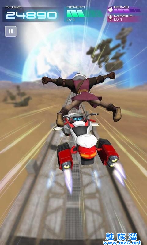 太空骑士追星是一款惊险闯关体验的驾驶冒险类游戏,你将能尽情的探索神秘而又危险的太空场景,这里拥有更多的关卡等着你来逃离,驾驶你的太空摩托能飞行穿梭在场景中之中,躲避前方所有的危险障碍勇敢的前进,获取的奖励非常的丰厚并能解锁新的载具帮助你完成挑战。