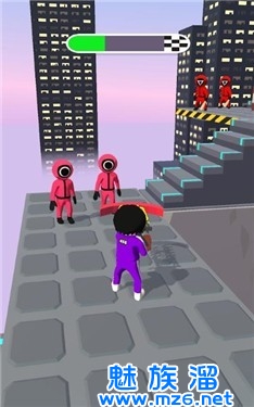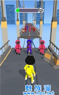 2、根据前段时间大火的鱿鱼游戏改编制作而来的闯关游戏。