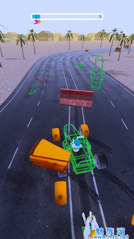 4.控制着车辆不时地行进,直到抵达游戏地终点。
