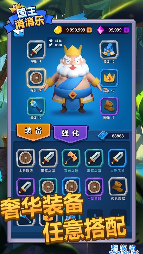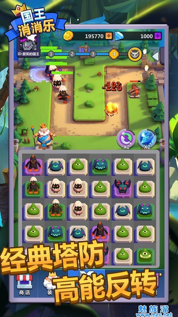 国王消消乐是一款结合了塔防游戏和消消乐游戏为一体的休闲向游戏,超多英雄自由搭配,还有丰富奢华的装备,玩家需要不断收集才能更好的战胜对手,玩家首先需要对自己的卡牌具有一定的了解,独特的趣味玩法。面对着敌人的进攻你必须调兵强劲,扞卫属于自己的王国。