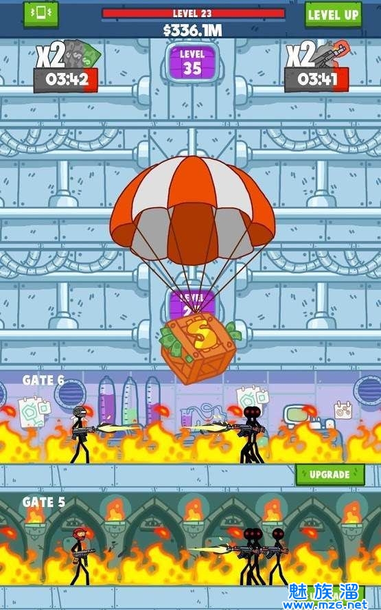 1、在游戏中你将控制火柴人在一个巨大的城堡里面射击战斗;