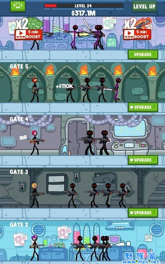 《火柴人城堡之战》是一款非常有趣的防守类塔防射击游戏,在游戏中,玩家将会扮演一个火柴人,通过各种不同的武器进行射击,用你灵活的走位,犀利的操作,不断躲避敌人的攻击,同时在关键的时候,给予她致命一击,通过击杀敌人你可以解锁多个防线同时防止敌人的进攻,你不仅会遇到强大的BOSS,你还能获取强力的伙伴帮助你作战,快来下载吧!