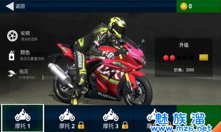 4、多种不同的摩托车可以让你去进行选择,每一个摩托车有着不同的驾驶体验.