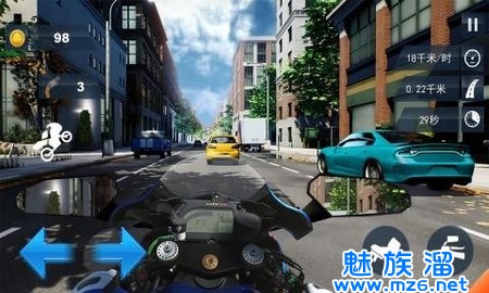 1、操控摇动手机来控制摩托车的方向,还可以控制加速或刹车,注意躲避公路上的车辆;