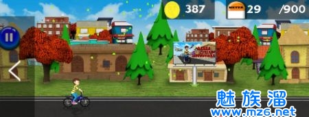 在前进的路上,你收集金币,你积累的金币越多,你能买的自行车就越多。