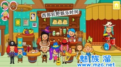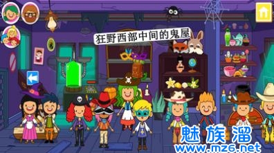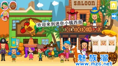 迷你小镇西部牛仔游戏在这座西部小镇中你可以去探索不同的房间,这里每个场景中都有不同的房间,超市、服装店、银行等等都可以去探索,而且你还可以和好友一起农场劳动,在这里种种植庄稼,等这些果实成熟之后就可以收获了!