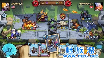 类似《英灵召唤师》,这种同时做出决策的玩法新颖!真的让我想想起了打口袋进行先读的紧张时刻www因为同时出拳机制的存在,玩家在放置随从的时候需要进行很多考虑,而你正可以通过现有随从的位置,来判断出敌人可能进行的决定。然后根据你猜测的决定,来做出自己的判断。优秀的判断往往可以直接左右一场比赛的胜负。类似口袋的先读,或者更简单点来说,就是猜拳。可以说这个游戏的精髓所在,就是利用这种猜拳机制,并不一定需要在对手有随从的路线进行进攻,可以在别的位置打出对手意象不到的卡牌,让节奏在你自己的掌控之中,我一般叫做偷鸡。